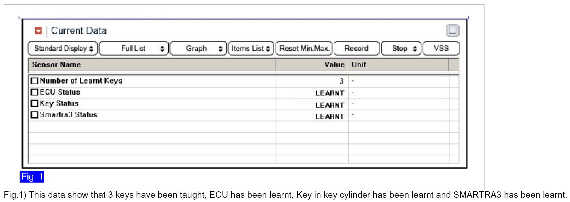2. Monitor the "ECM, Key and Smartra Status" Parameter on the Scantool.