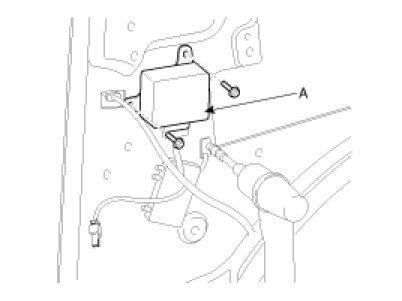 Loosen the mounting bolts and remove the back warning control unit (A) from the quarter panel.