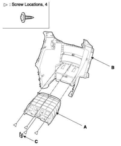 After removing the mounting bracket (A), remove the cup holder assembly (B).