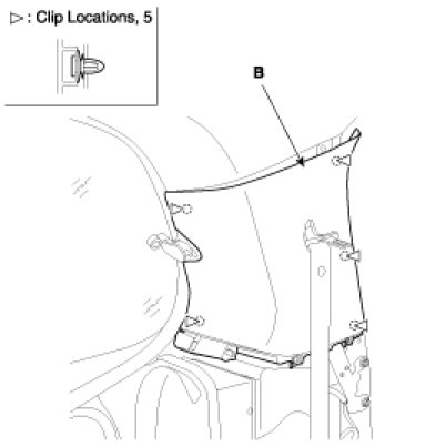 3. Remove the rear pillar upper trim (B).