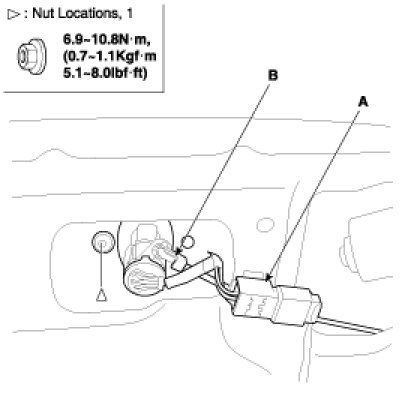 3. Disconnect the key rod (B) and connector (A).
