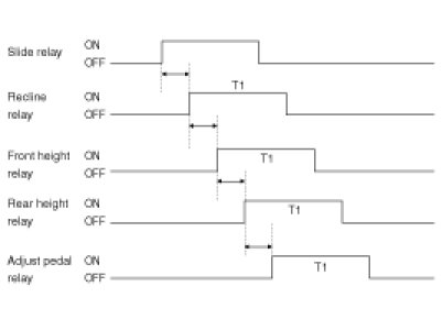 1. When IG is off (CAN BUS data IG transmitted from IPM is "off") and a key is removed (CAN BUS data Key Reminder Switch transmitted from IPM is "off"), and if "ID1" or "ID2" is received during keyless unlock operation, it automatically adjusts seat and pedal positions as memorized in keyless code (there is no buzzer output during preset recall operation by keyless). However, seat slide adjustment position is determined as follows, depending on Auto switch.