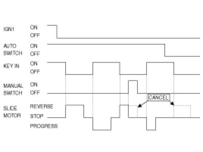 2. If a key is removed and CAN BUS data transmitted from IPM changes from "on" to "off", the seat slide will move 50mm backward based on the IGN off point. If a key off position is farther back than 50mm against the IGN off point, get-off gearing will not be conducted. If slide rear limit becomes off in the middle of backward operation, retreat control will be halted.