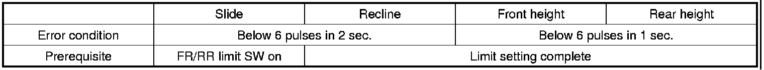 - Seat: if signal input is normal with over 6 pulses within a sec. from position sensor of a motor with an error caused by manual switch.