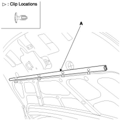 Detach the clips, then remove the hood weatherstrip(A). Take care not to scratch the