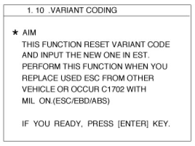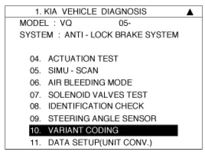 If the warning lamp(ESC, EBD, ABS) is illuminated, follow the "Variant coding" again.