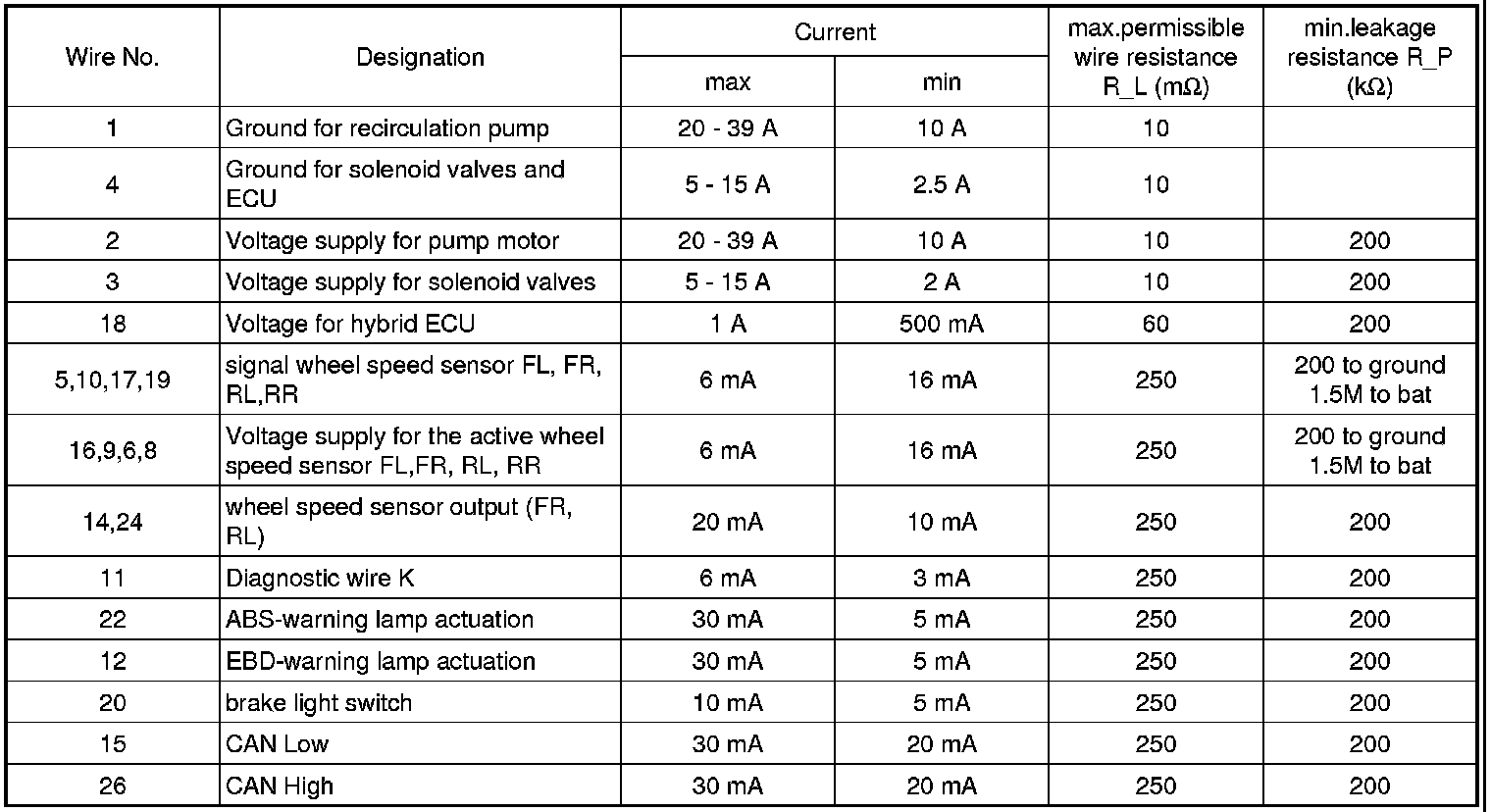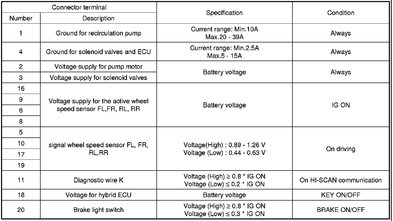 ECU CONNECTOR INPUT/OUTPUT(ABS)