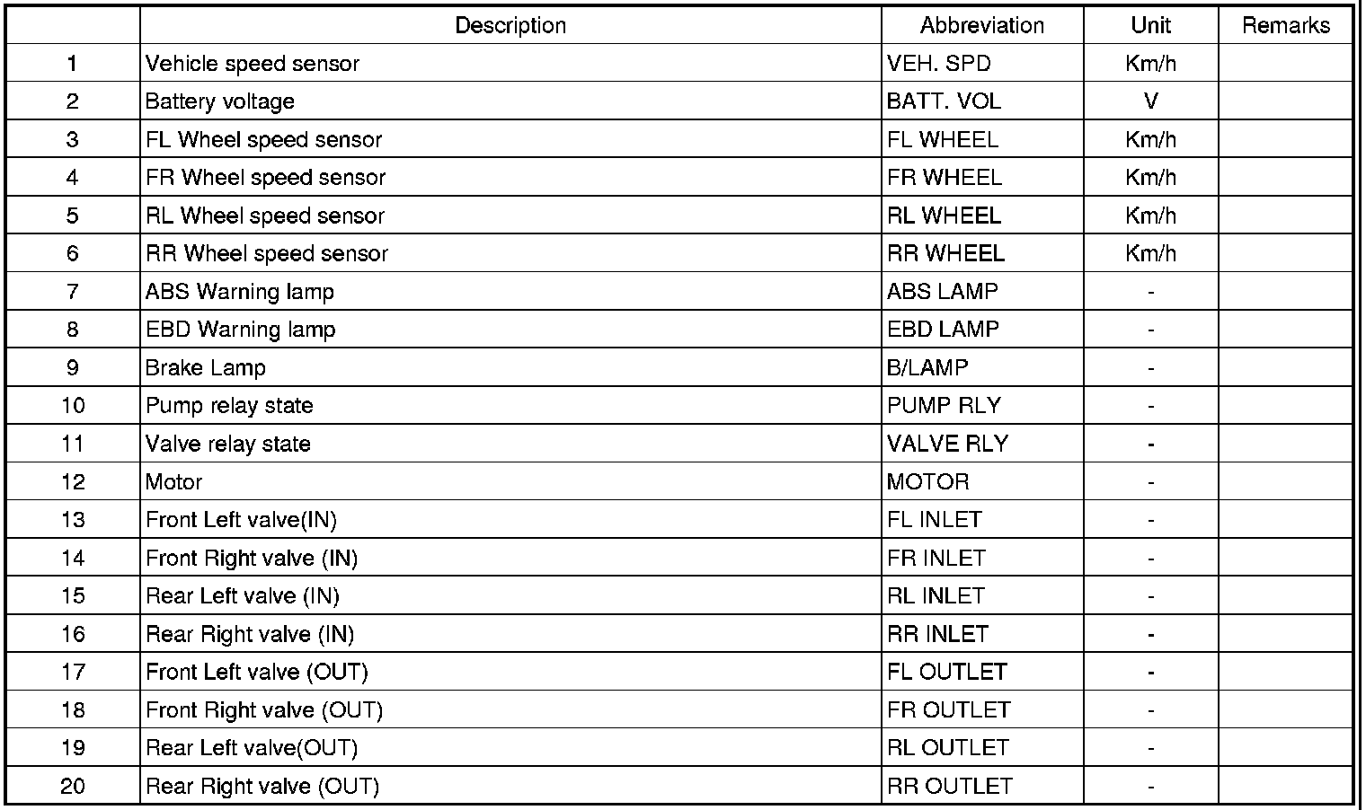 SENSOR OUTPUT ON SCAN TOOL(ABS)