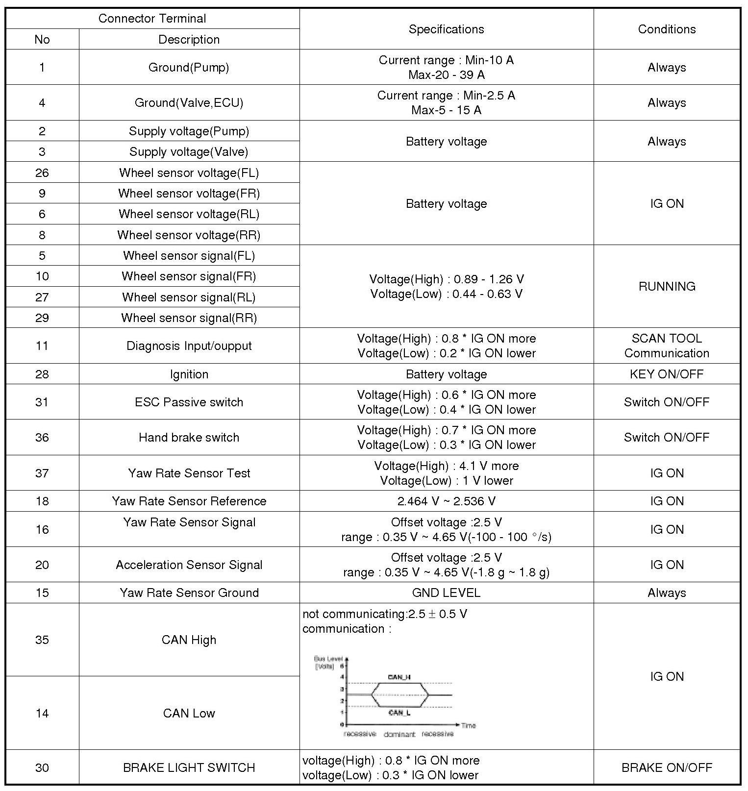 Pinout Values and Diagnostic Parameters