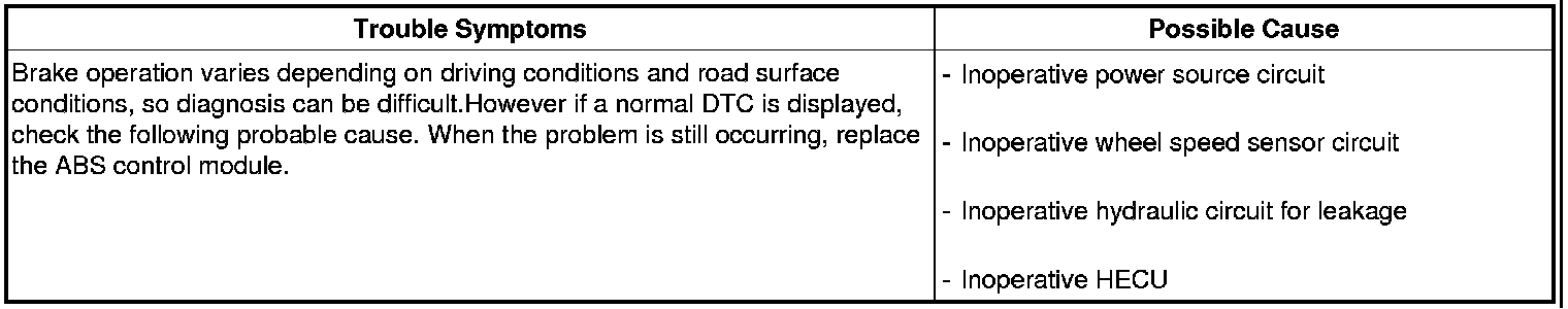 > Check the harness or connector between the fuse (10A) in the engine compartment junction block and the ABS control module. Repair if necessary.