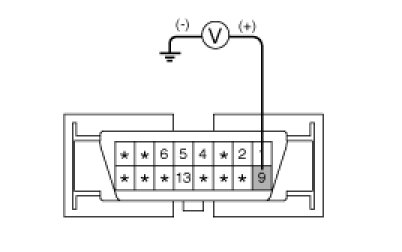 Measure the voltage between terminal 9 of the data link connector and body ground.