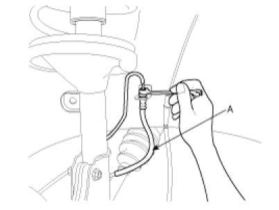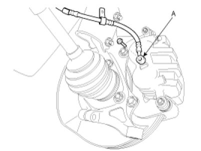 4. Remove the brake hose connecting bolt (A) from the caliper assembly.