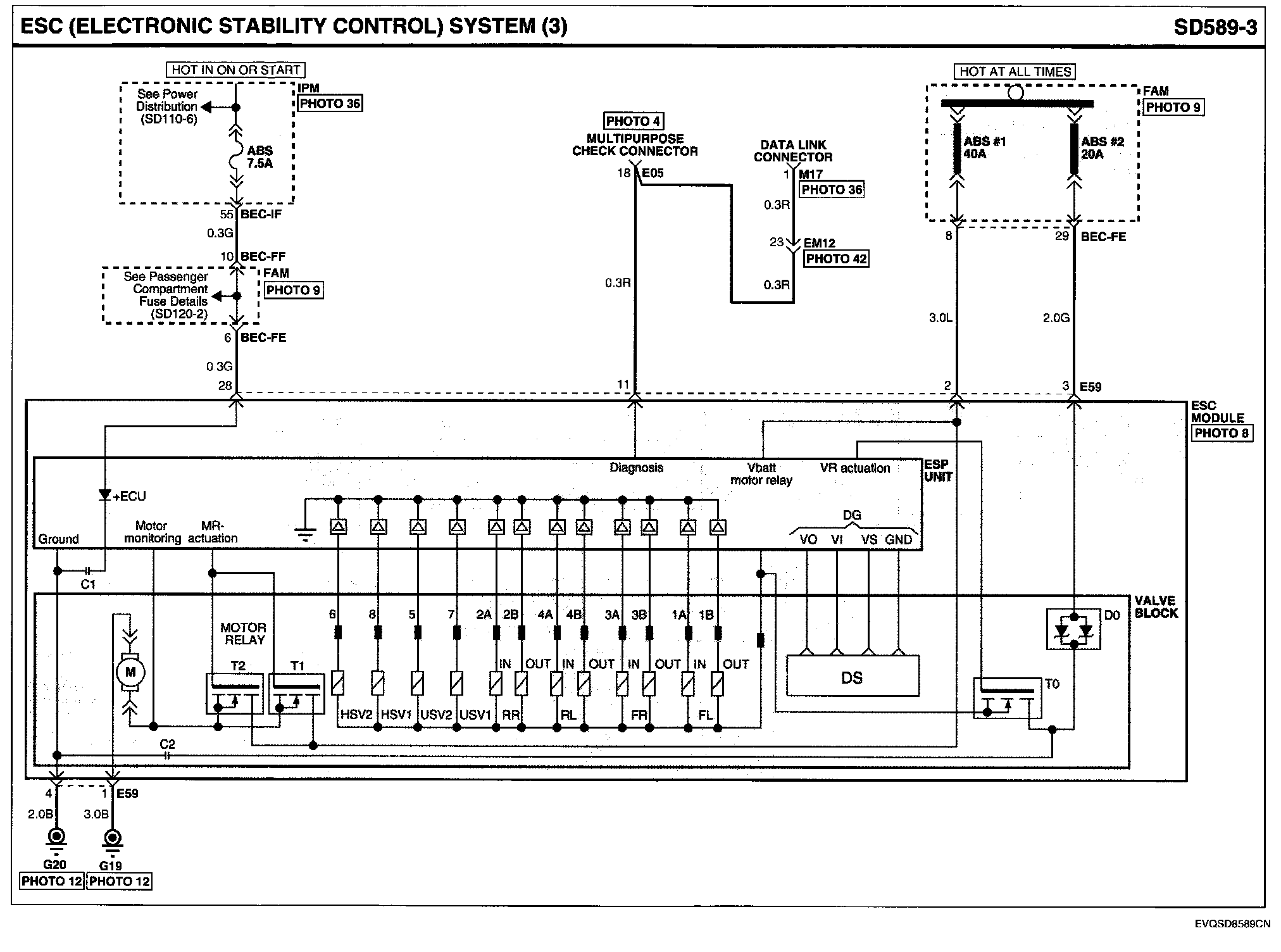 Locations: Location photographs (references to PHOTOS) referred to within these diagrams can be found via the photo number at the vehicle level under Locations by Photo Number. Component Locations