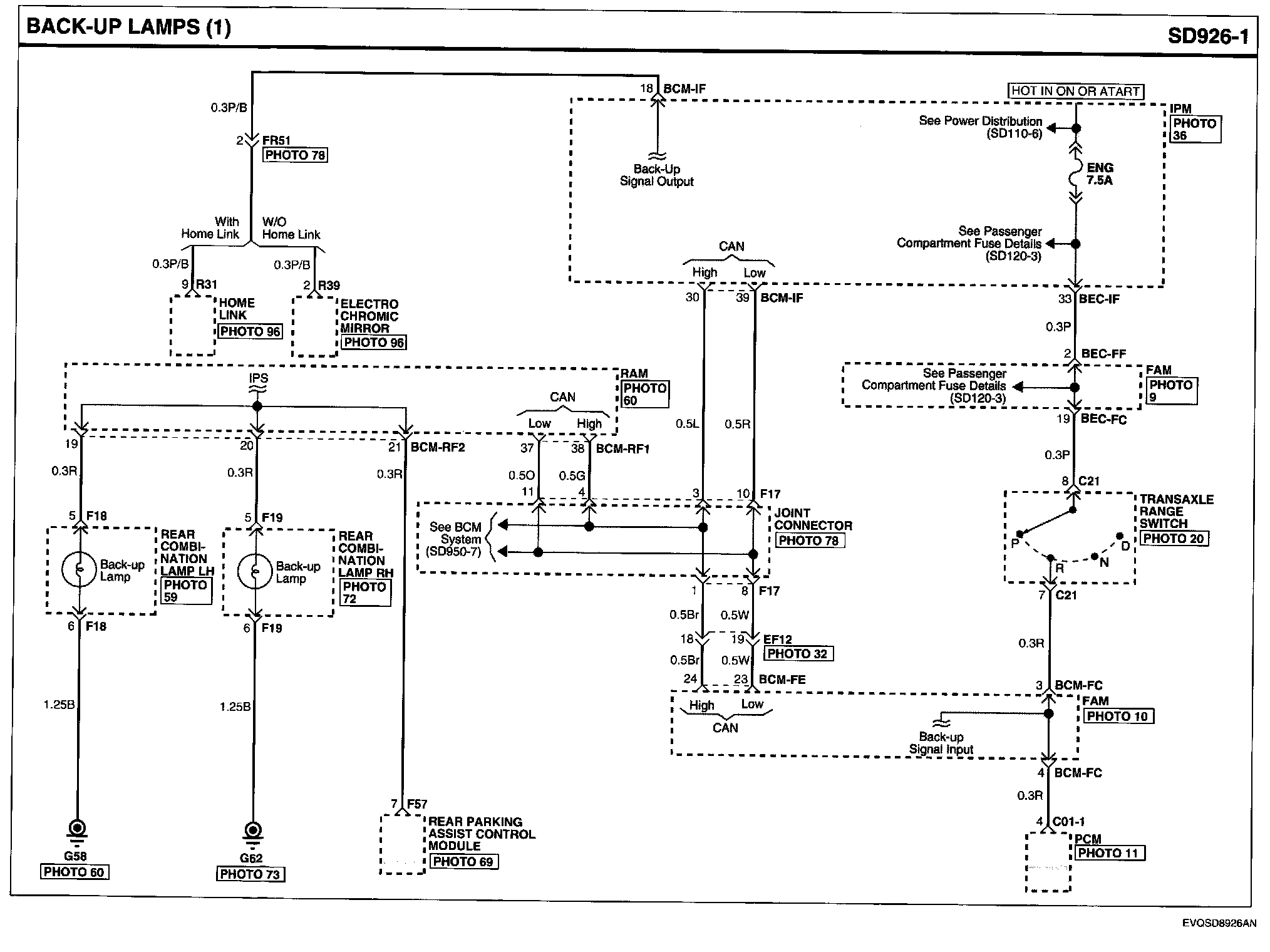 Locations: Location photographs (references to PHOTOS) referred to within these diagrams can be found via the photo number at the vehicle level under Locations by Photo Number. Component Locations