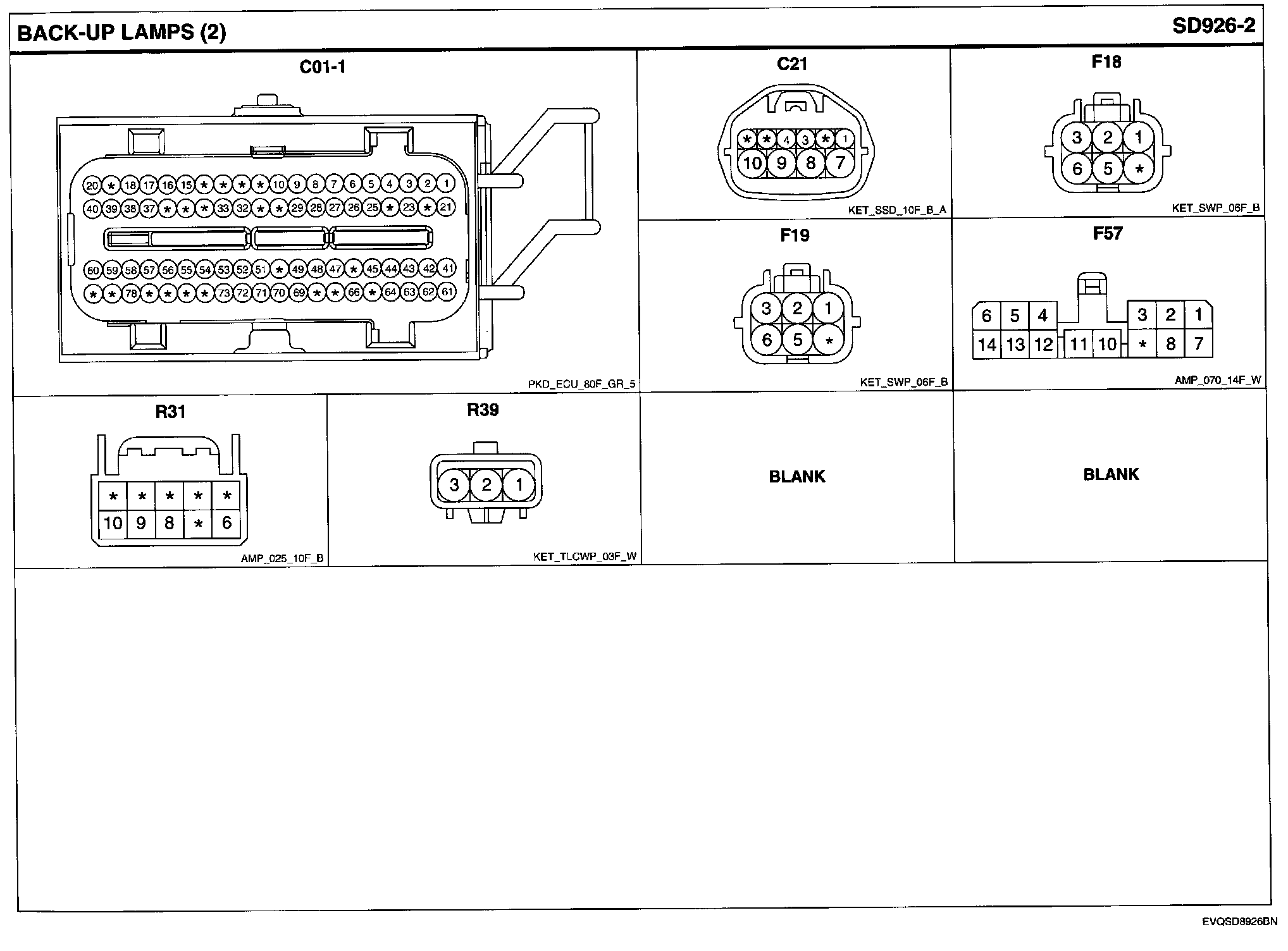 Back-Up Lamps Connector Pin Outs: