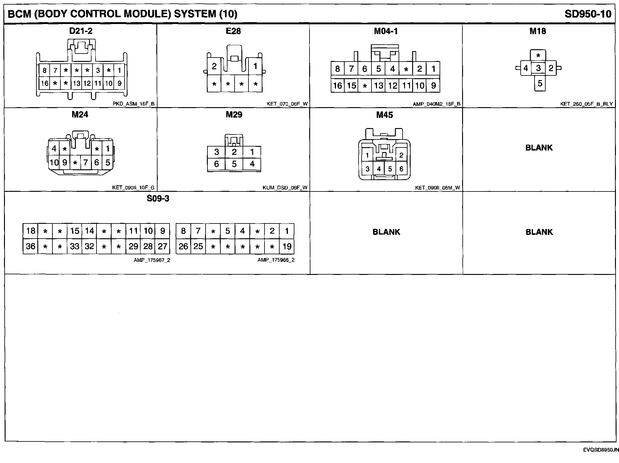 BCM (Body Control Module) System Connector Pin Outs: