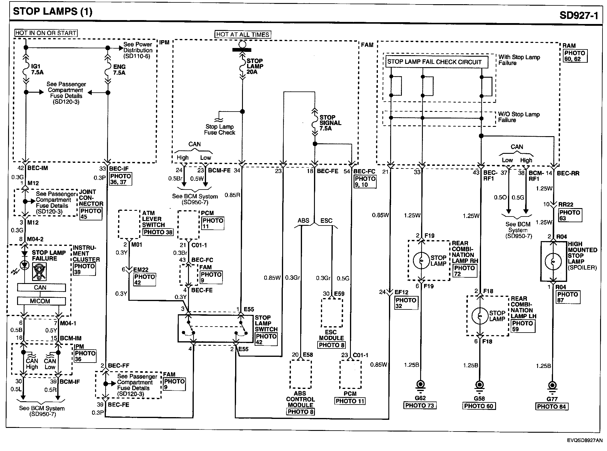 Locations: Location photographs (references to PHOTOS) referred to within these diagrams can be found via the photo number at the vehicle level under Locations by Photo Number. Component Locations
