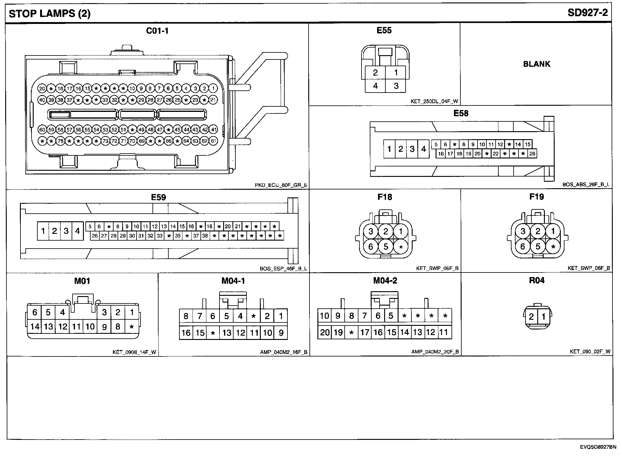 Stop Lamps Connector Pin Outs: