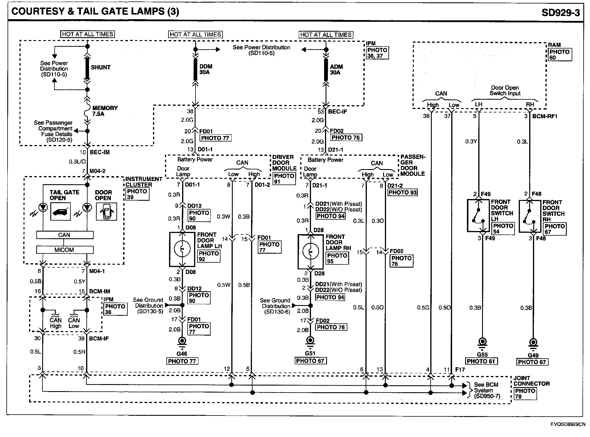 Locations: Location photographs (references to PHOTOS) referred to within these diagrams can be found via the photo number at the vehicle level under Locations by Photo Number. Component Locations