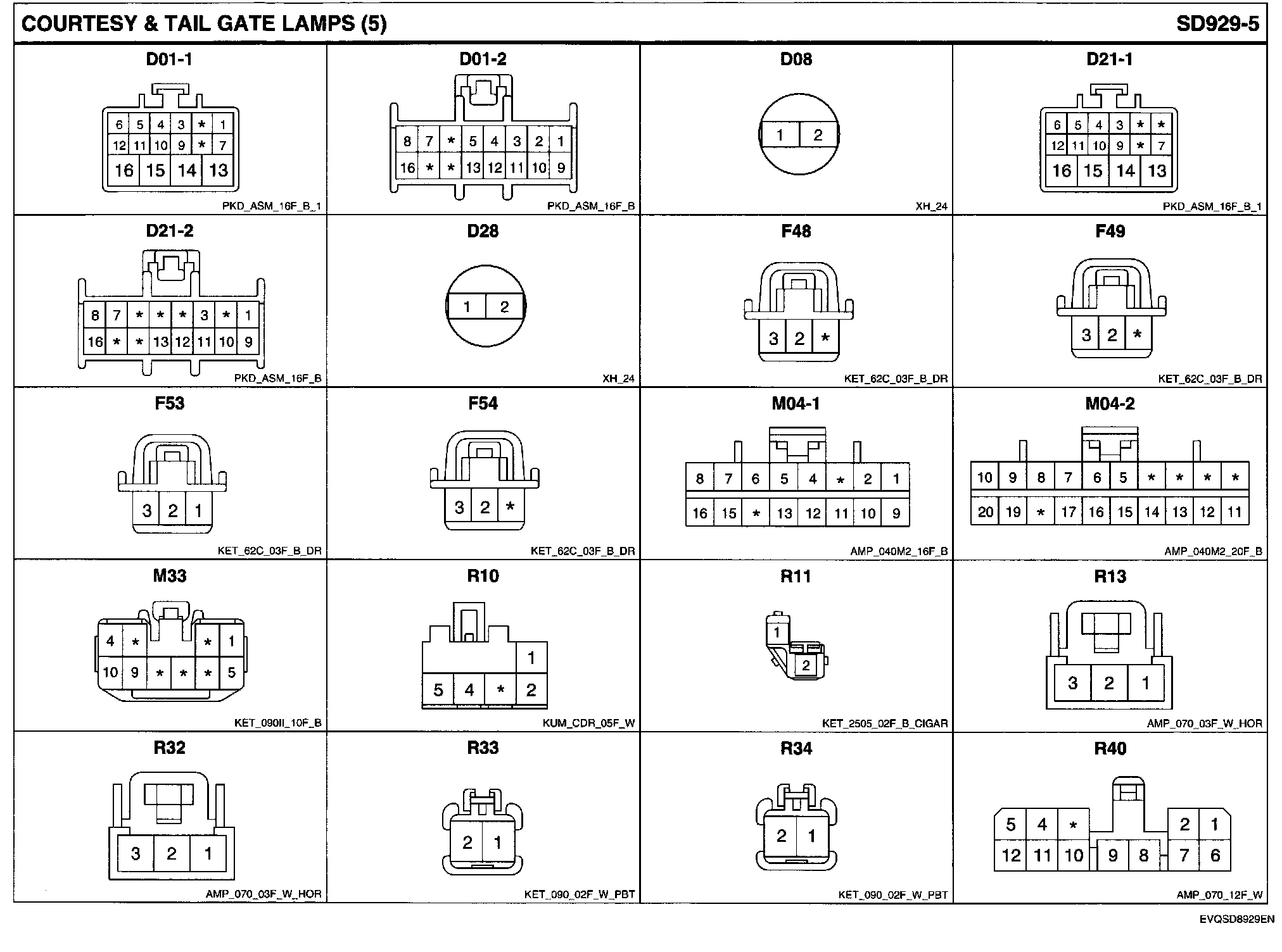 Courtesy & Tail Gate Lamps Connector Pin Outs: