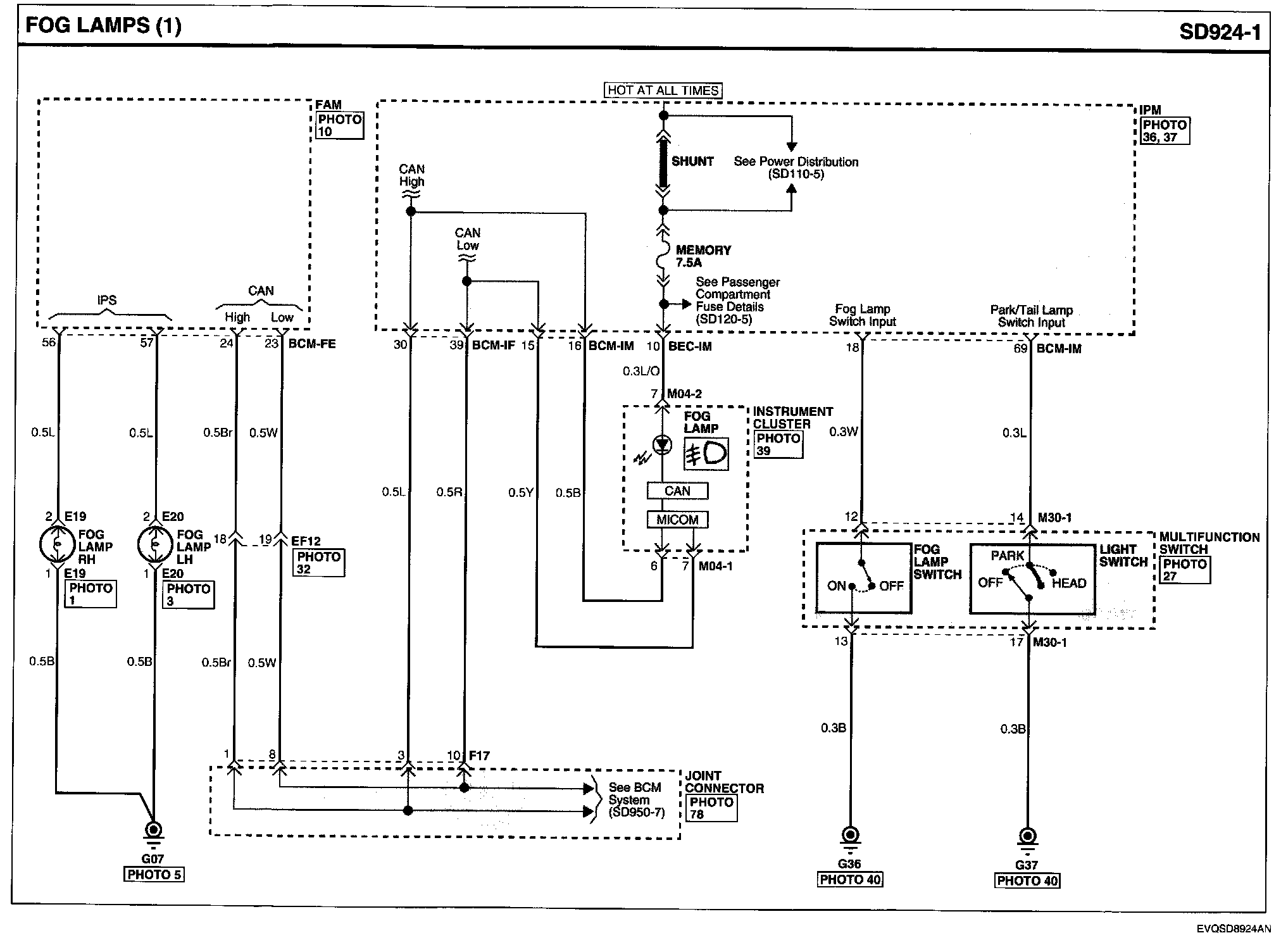 Locations: Location photographs (references to PHOTOS) referred to within these diagrams can be found via the photo number at the vehicle level under Locations by Photo Number. Component Locations