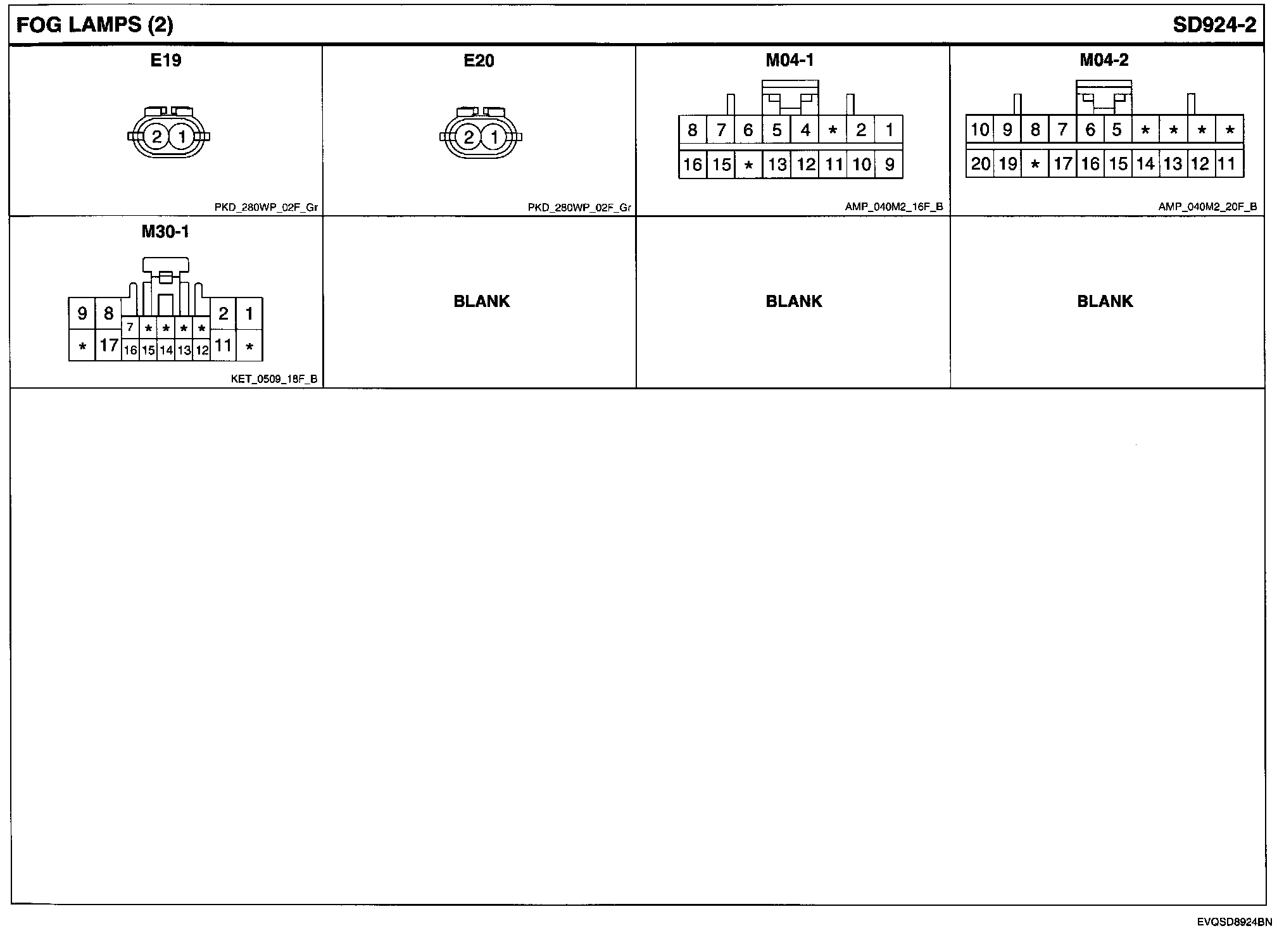 Fog Lamps Connector Pin Outs: