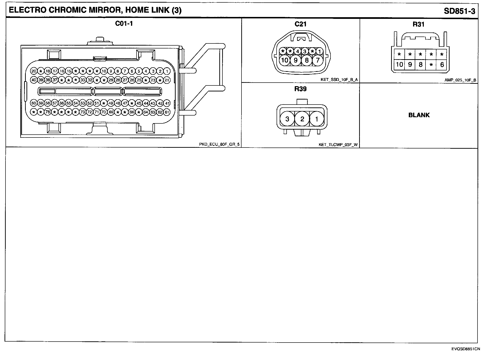 Electro Chromic Mirror, Home Link Connector Pin Outs: