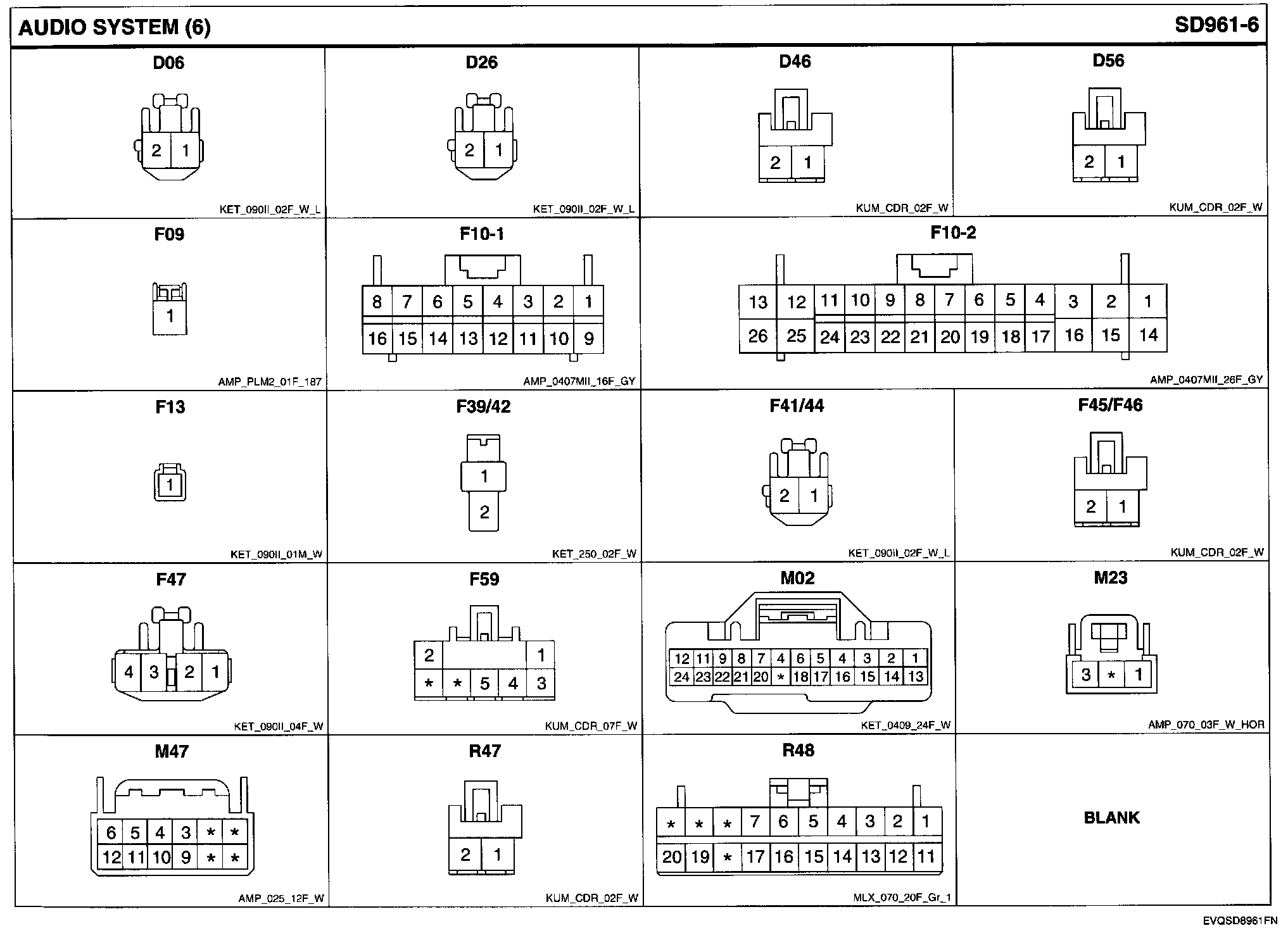 Audio System Connector Pin Outs: