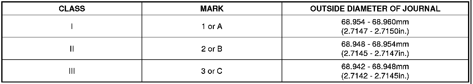 Main journal diameter : 68.942 - 68.960mm (2.7142 - 2.7149in.)