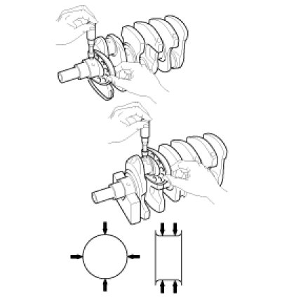 Using a micrometer, measure the diameter of each main journal and crank pin.