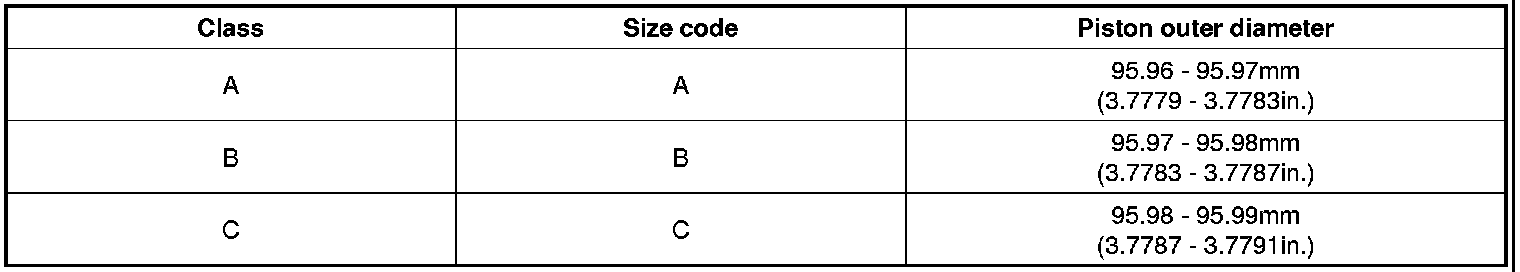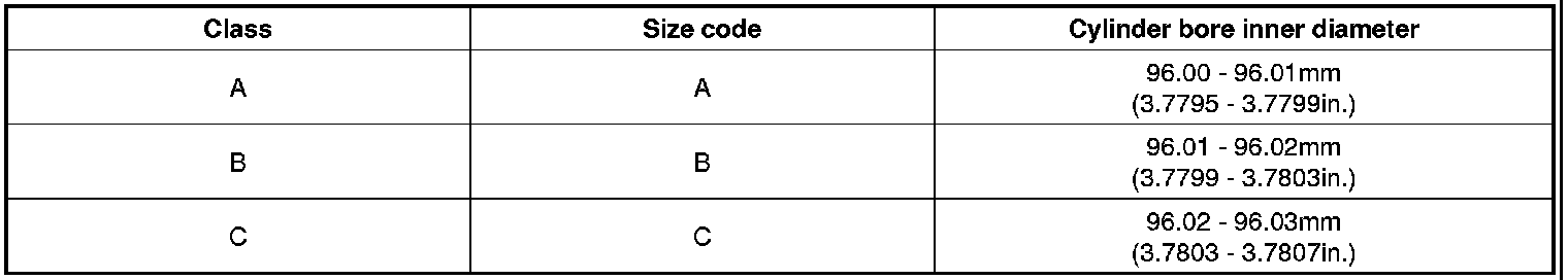 6. Check the cylinder bore size code on the cylinder block.