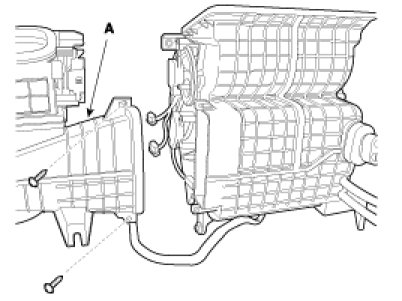12. Loosen the heater unit mounting screw and clip and then remove the heater unit cover(A).