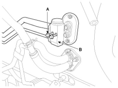 4. Remove the bolts (A) and the expansion valve (B) from the evaporator core.