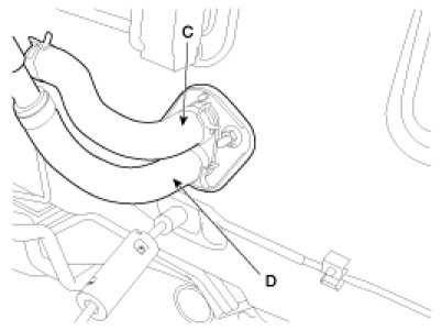 5. Disconnect the inlet (C) and outlet (D) heater hoses from the heater unit.