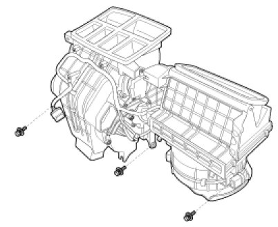 9. Remove the heater & blower unit after loosening 3 mounting bolts.