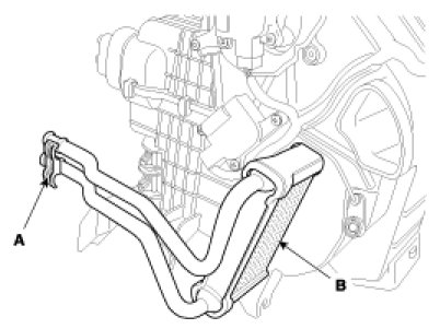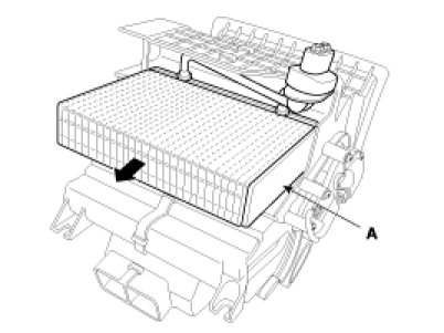 11. Remove the heater core (B) after remove the cover (A).