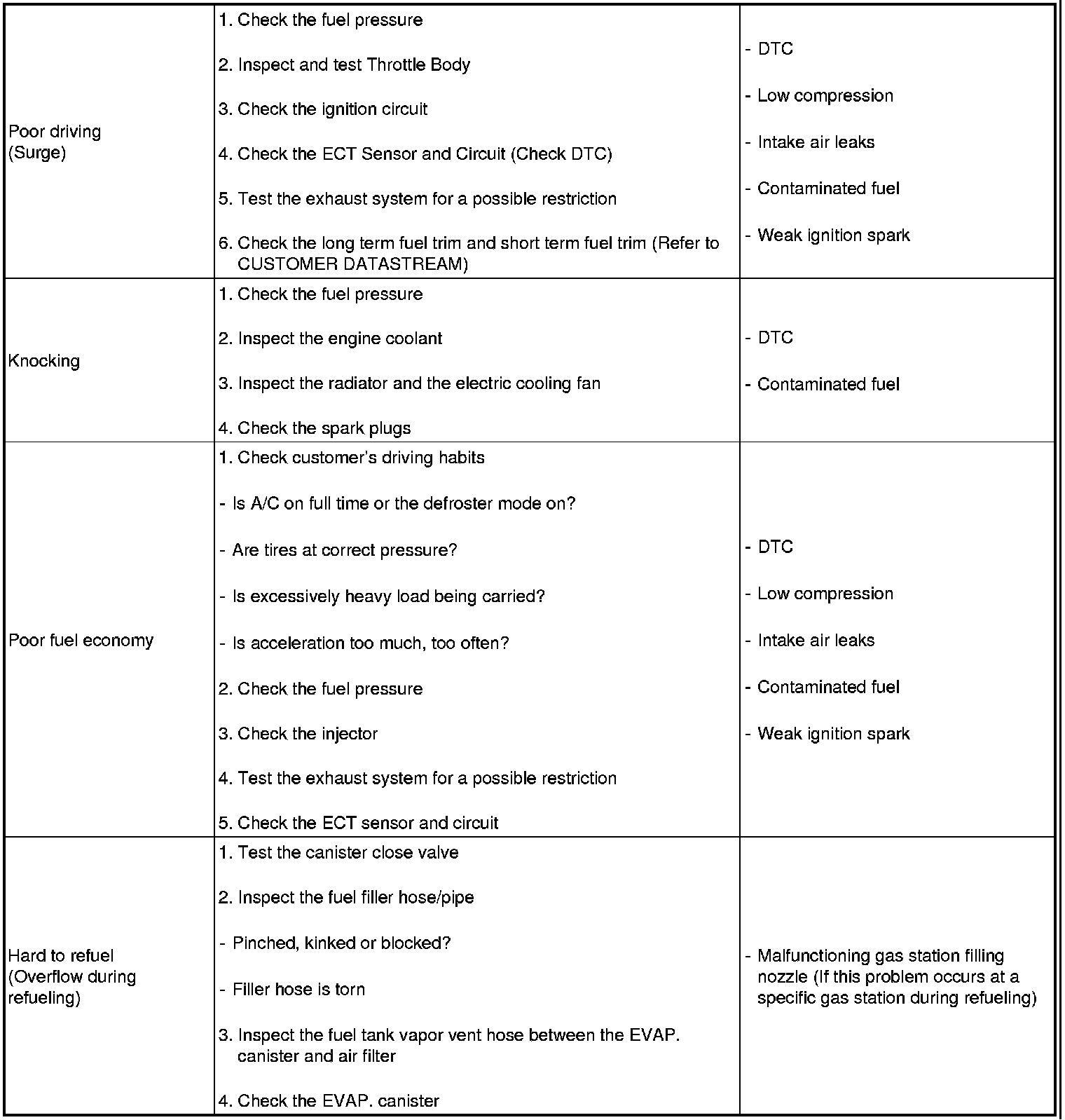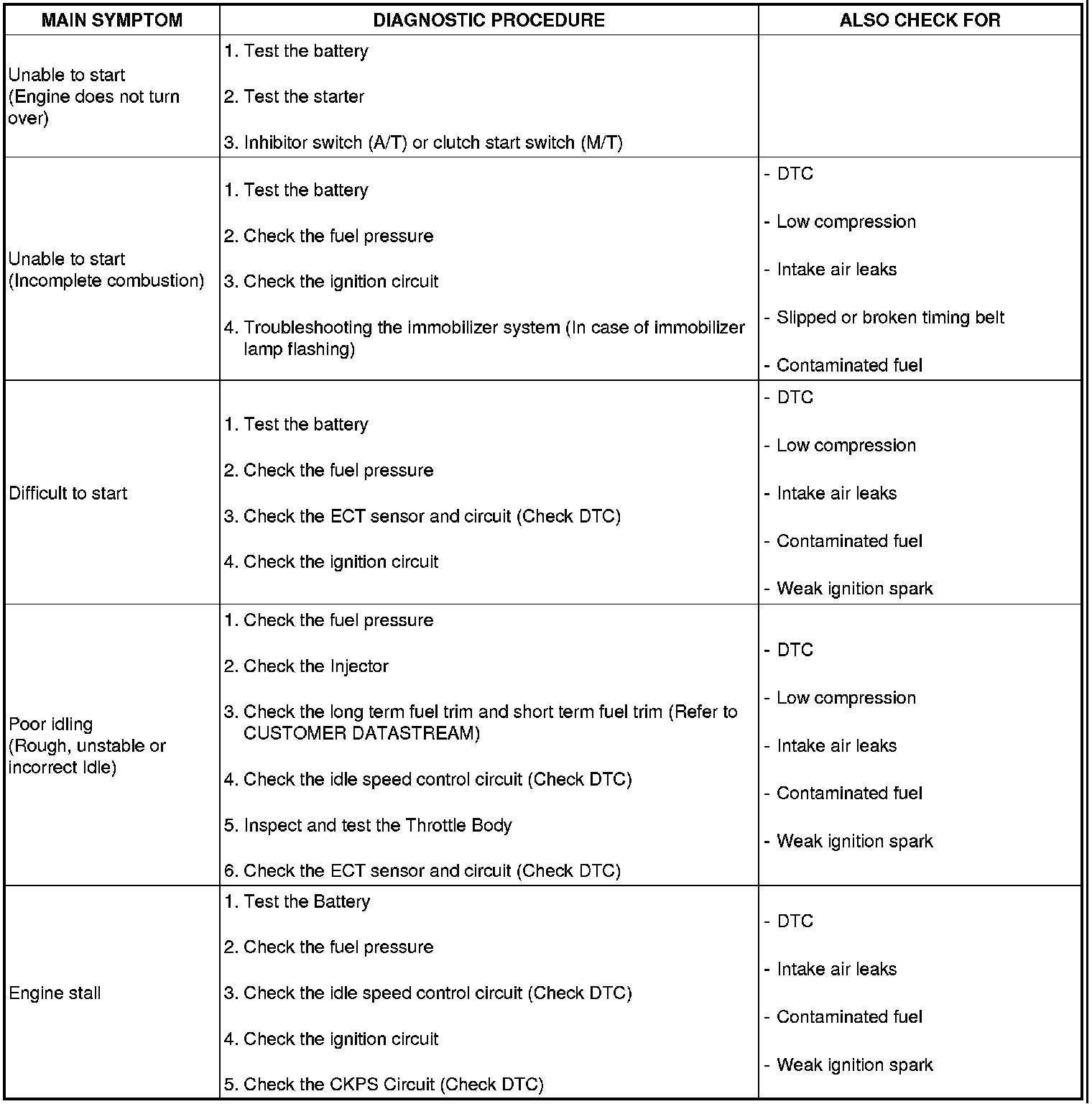 SYMPTOM TROUBLESHOOTING GUIDE CHART