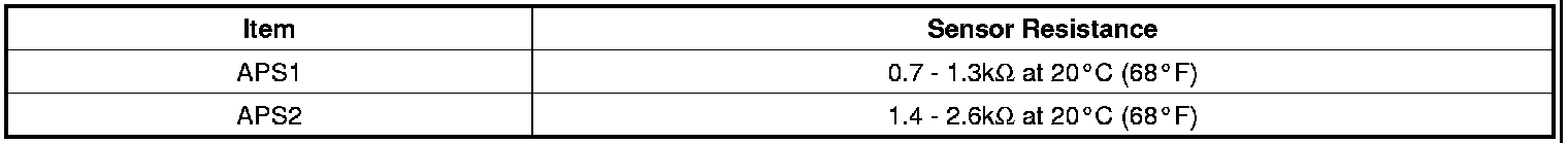 Accelerator Position Sensor (APS) is installed on the accelerator pedal module and detects the rotation angle of the accelerator pedal. The APS is one of the most important sensors in engine control system, so it consists of the two sensors which adapt individual sensor power and ground line. The second sensor monitors the first sensor and its output voltage is half of the first one. If the ratio of the sensor 1 and 2 is out of the range (approximately 1/2), the diagnostic system judges that a malfunction has occurred.