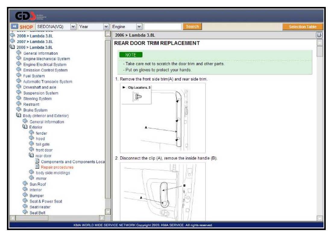 1. If it is determined that the power sliding door remote controller motor is defective, follow the instructions provided in Kia's Global Information System (KGIS) to remove the door trim and controller assembly before bench repairing the controller unit.