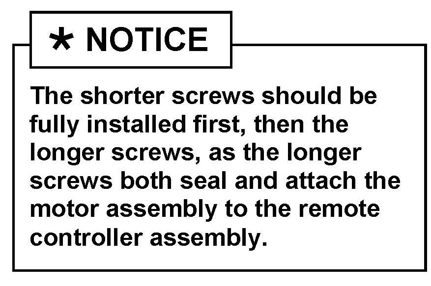 2. Reinstall the cover making sure the seal is properly in place, and that the proper length screws are installed in the proper positions. Do NOT pinch the wiring between cover and housing!