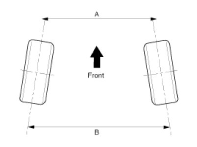 Toe-in (B-A) mm (in) : 0 ± 2 (0 ± 0.0787)