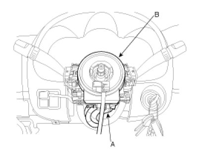 7. Disconnect the connectors (A) and then remove the clock sprig (B).