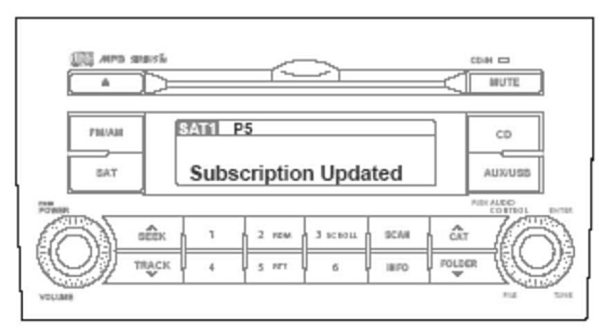 3. The radio will display "Subscription Updated" with 30 seconds to 5 minutes. Refer to the "Antenna Error Message" section of this TSB if the message is not displayed within the 30 second to 5 minute time frame.