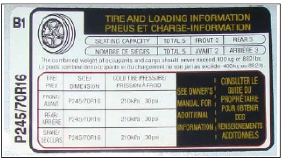 In some vehicles produced prior to May 2008, there may not be sufficient space to apply the label within one inch on the Tire and Loading Information label. If this is the case, select a location as close to this position as possible.