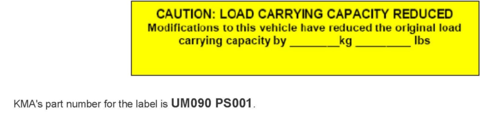 "Any party that adds weight to a completed vehicle exceeding the lesser of 1.5 % of the vehicle's gross weight rating or 100 lbs (before first sale to the retail customer) is required to disclose this extra weight on labels affixed to the vehicles. Lesser amounts of weight may be added without changing or adding labels."