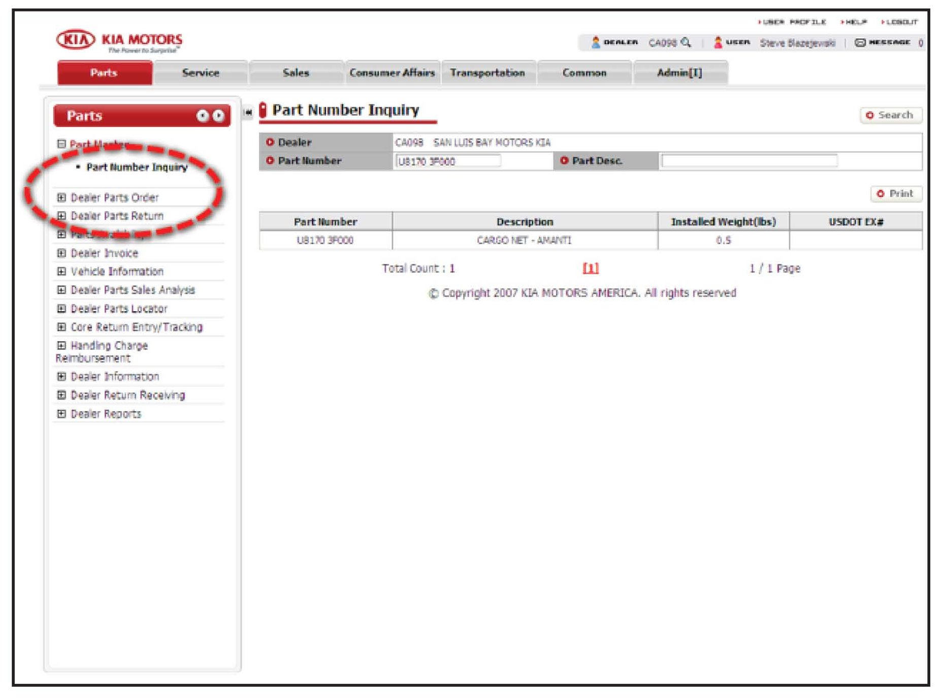4. Select any/all Kia accessories being added at this time, enter P/N in WEB DCS screen, (see 4. attachment 2 for detailed instructions to check accessory weights in Web DCS) read the weight for each, and enter in table below.