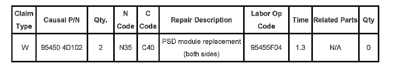 Labor time includes R&R of rear area trim panels to access PSD modules.