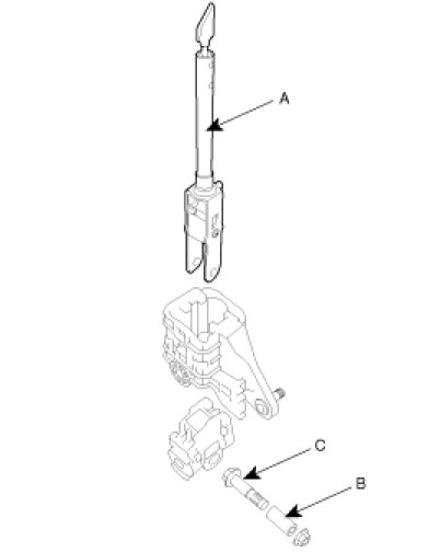 1. Grease the tube (B) and install the lever (A) by tightening the bolt (C).