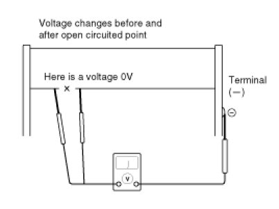 4. To check for open circuits, slowly move the test lead in the direction that the open circuit seems to exist. Try to find a point where a voltage is generated or changes to 0V. The point where the voltage has changed is the open-circuit point.