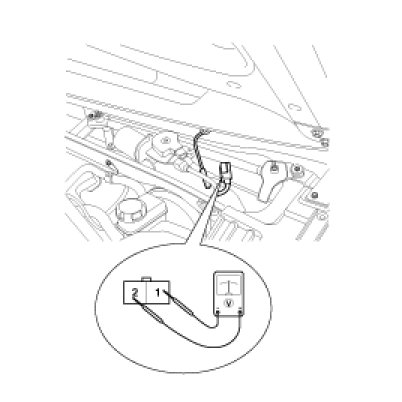 4. Turn the ignition switch ON and the windshield deicer switch ON, then measure the voltage between the terminals of harness side deicer connector.